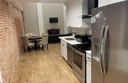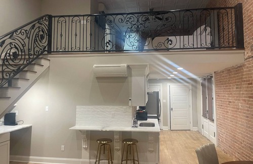 Originally built in 1914, the historic Worthmore 5 & 10 Store has been thoughtfully transformed into a luxury apartment suite, blending modern convenience with old-world charm. This fully restored 2-bedroom, 2-bath apartment features exposed antique brick walls, a striking chandelier centerpiece, and is ideally located for easy access to grocery stores and I-10, offering both comfort and character.
