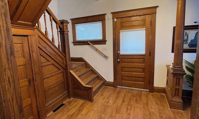 Stay comfortably in Waterloo at this 3-bedroom historical house. With 2 queen beds and 1 full bed, guests will have plenty of space to unwind. This lovely property also features a cozy living room, formal dining and den with a 2 futons for extra sleeping arrangements. Enjoy amenities such as heating, WiFi, ADT security and a washing/dryer machine during your stay. The house is fenced in for your privacy and big yard for a family gathering,
