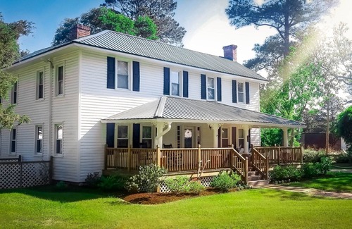 Located in the rural area of Fayetteville, NC, sitting creek-side on 3 beautiful lush acres of nature and serene beauty. Our home has 4-themed rooms. Rooms have queen bed, closets & sitting area. Two Shared baths w/ heated floors, & modernized fixtures. In rooms you will find a soft monogrammed robe, with hygiene products, and towels.