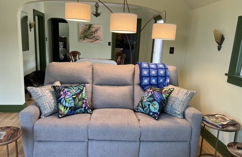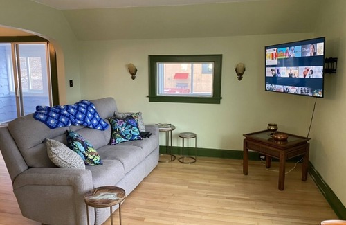 Known as The LaBonte House the original building was built in 1908. Starting as a dry goods store then added on as a private residence it later became an antique store, as well as the offices of a local periodical, Marquette Monthly. Currently the downstairs hosts an art gallery. The upstairs apartment has been carefully remodeled to include modern amenities while keeping original art deco fixtures and charm. All original art and reproductions have been created by local artists and is available for purchase at the art gallery downstairs. This "Artists Apartment" is located in the middle of the active and vibrant North 3rd Street corridor featuring restaurants, coffee shops, brew pubs, ice cream, and hair salons many within a short walk away. Picnic Rock beach on the shore of Lake Superior is a 15 minute walk or 2 minute drive away.