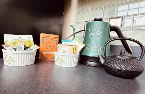 -Enjoy the beautiful trees and all the natural light from our wall sized windows while you cook in our fully stocked kitchen. We have all the pots, pans, utensils, blenders, can openers, mixer, so on and so forth— that you could possibly need to host a dinner. Oh, and don’t forget we have a Keurig with coffee pods ready for you to start your morning! We know how important coffee is to you ;)
