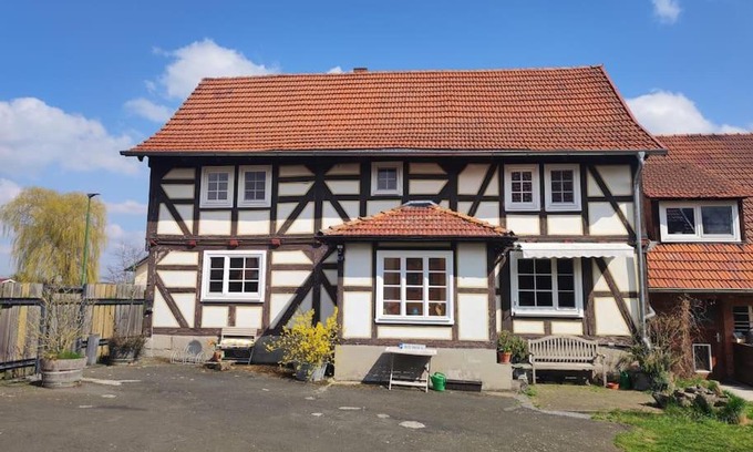 Offering a garden, Historischer Hof, einladend für Mensch und Tier. Features accommodations in Schenklengsfeld. With inner courtyard views, this accommodation provides a patio. There's an outdoor fireplace and guests have access to free Wifi, free private parking, and an electric vehicle charging station. Providing a terrace and garden views, the spacious vacation home includes 3 bedrooms, a living room, satellite flat-screen TV, an equipped kitchen, and 2 bathrooms with a shower. Towels and bed linen are provided in the vacation home. There's also a seating area and a fireplace. For guests with children, the vacation home offers outdoor play equipment. A bicycle rental service is available at Historischer Hof, einladend für Mensch und Tier., while cycling and hiking can be enjoyed nearby. Merkers Adventure Mines is 18 miles from the accommodation. Kassel-Calden Airport is 62 miles away.