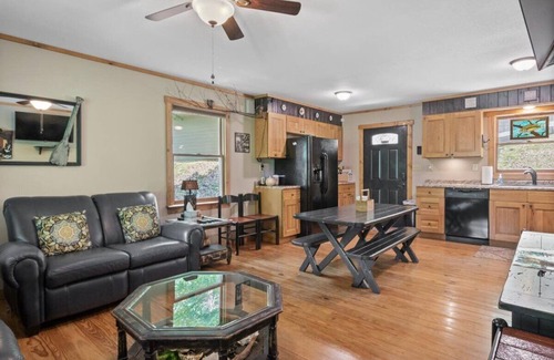 This 4 BR, 3 BA cabin has everything your looking for and more. Home sleeps12 in beds (no pull outs or futons). Outdoors the home offers privacy and a large covered concrete dock, fire pit with wood, kindling and roasting sticks, corn hole, hot tub, outdoor seating for 12+, 2 Kayaks/paddles, 2 Paddle boards/paddles, parking for 3-4 cars in driveway (additional parking available if needed ask for details), stainless steel cable railing, and natural gas Blackstone griddle. Indoors you will find a fully equipped kitchen (appliances, crock pot, blender, toaster, mixer, pots/pans, glassware, plates, cups, bowls, utensils, griddle, George Foreman grill, regular coffee pot & more), USB outlet in kitchen for charging convenience, 2 person 'Doc & Pies' arcade game and a separate foos ball table. We also furnish, at no additional cost, citronella candles, butane lighters, sheets, towels, trash bags, toilet paper, paper towels, hand/dish soap, laundry detergent, iron, ironing board, hair dryer for each bathroom and much more. COME ENJOY THIS HOME AND ALL IT HAS TO OFFER!! Message owner today for additional information or click to book your best vacation ever on Norris Lake.....