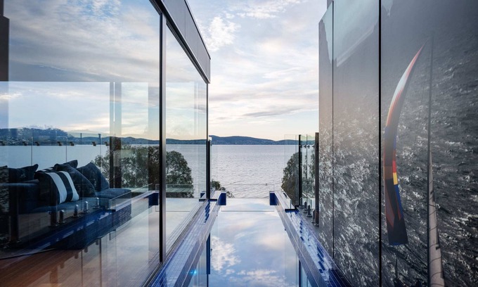 Designed with detail in mind, such as rare blue granite imported from Tanzania adorning the main bathroom walls, and a heated cantilevered pool and hot tub extending from the penthouse so guests can swim into the harbour view.