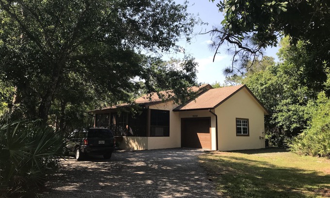 This is a single freestanding one bedroom guest home. It is approx. 300 feet from the main house with plenty of privacy. There are TVs in the living room and bedroom with direct TV. We are 2 miles west of town down a private road. There is a great opportunity to see wildlife. There is a washer and dryer. A nice elevated front porch. There are linens for your use. A one car garage that will fit a compact car. We are 4 miles to Hobe Sound beach and 4 miles to I-95. Jonathan Dickenson State Park main gate is 5 miles and Hobe Sound National Wildlife refuge is 4 miles. Great dining down the street at Harry’s!