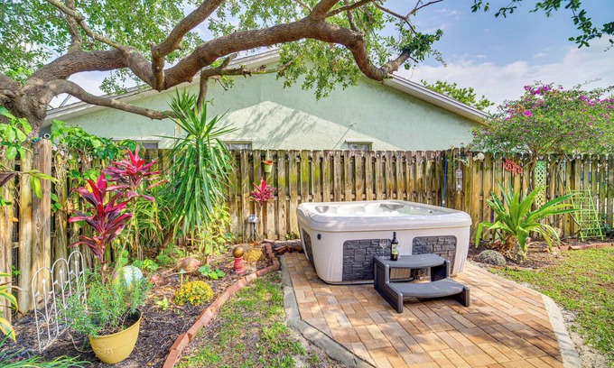 Experience coastal bliss at this 2-bedroom, 1.5-bath villa tucked away in the tranquil corners of Hobe Sound! This vacation rental has a private hot tub for relaxation, a screened porch for evening meals, and a fenced-in yard for your furry friends. Spend the day sunbathing at Jupiter Beach, visit nearby Port Salerno, lace up your boots for a hike on one of many trails in the area, or head to the boat launch just 1 mile away for a day on the water. Book this villa today for a fun-filled retreat!