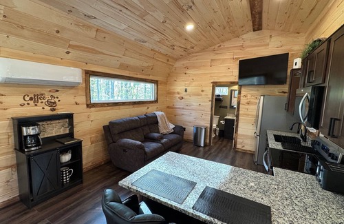 This intimate cabin offers the perfect escape for couples seeking tranquility and adventure. Spend your days exploring nearby Cantwell Cliffs Park or Rock House, hiking the 20 acres of private trails on the property, or simply relaxing on the deck with a morning coffee. In the evenings, unwind by the solo fire pit under a star-filled sky.