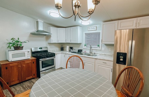Newly renovated 3-bedroom, 2-bathroom home with a fully equipped kitchen and dining area.