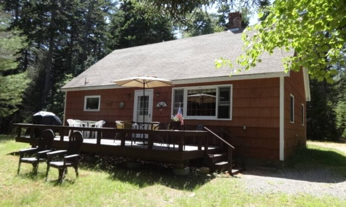 Cedar Haven is a nice, private two bedroom cottage on Hodgdon Pond, and across the pond are just the trees of Acadia.