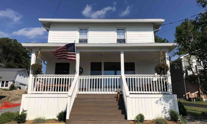 Enjoy our perfectly imperfect lake house, with stunning sunsets every night! Although we welcome families with children, we want to be perfectly clear that this is a 100+ year old house, and is not child proof. It has steep stairs, with 3 of the 4 bedrooms on second story. Must walk across the street to access lake, also has a 3 foot break wall along the shore. We love the charm of our old house but may not be suitable for all. Full time tenant lives above the detached garage behind home.