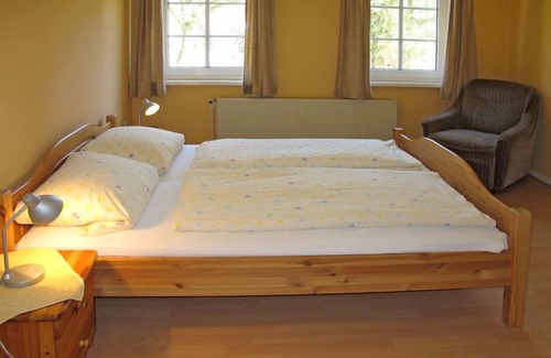 Large 2-family house "Hof Bajema". 3 km from the centre of Oberndorf, on the outskirts, 4 km from the centre of Wingst, 38 km from the centre of Cuxhaven, in a secluded position, 18 km from the sea, 10 km from the lake, 8 km from the beach, 3 km from the river. For shared use: property (fenced), well-kept garden with lawn and trees. Private: children's playground (swing, sandbox). In the house: washing machine (for shared use, extra). Parking at the house. Shop 3 km, supermarket 8 km, railway station "Wingst" 3 km, sandy beach "Elbstrand Krautsand" 8 km, grass beach "Otterndorf" 18 km, outdoor swimming pool 4 km, indoor swimming pool 4 km, lake Ostesee 10 km. Riding stable 14 km. On the estate animal husbandry. Please note: the owner lives in the same residence.