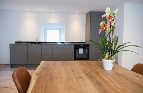 This modern 4.5-room flat is located on the ground floor of a lovingly renovated house to the highest standard, creating the perfect blend of old and new. With a cosy outdoor seating area, you can enjoy the fresh alpine air here. It is located in the middle of the village centre in a former traditional building in Lantsch/Lenz and combines the charm of times gone by with modern living comfort.