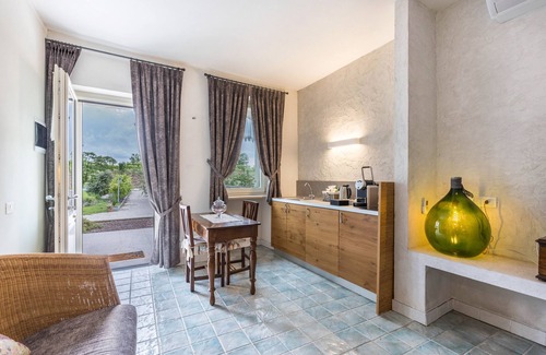The holiday apartment "Agriturismo Tenuta Corte Tese 2" in Sona is immersed in the morainic hills and surrounded with vineyards, creating an ideal space for those seeking tranquility and relaxation. This 35 m² property consists of a living room, a kitchen, 1 bedroom, and 1 bathroom, and can accommodate 2 people. On-site amenities include Wi-Fi and air conditioning. A baby cot and a high chair are also available.