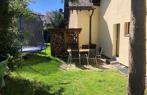 Stepping outside, you will be delighted by the private garden, which is available for exclusive use. The terrace and balcony are a real highlight, inviting you to relax in the fresh mountain air. Whether you want to spend a quiet afternoon with a book or dine with your family, the outdoor areas provide the perfect setting.