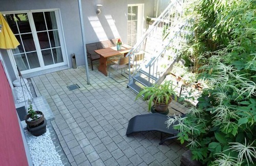 The non-smoking apartment is accessed through a separate entrance that also serves as a balcony. . The apartment has a generous kitchen, a light living and dining room, a bedroom with a double bed (200 x 200cm) and a shower and WC. A radio, TV, Internet access, bed linen and towels are provided. The apartment provides 49m² of space for two people. One further person can be accommodated on a comfortable supplementary bed. A cot can also be provided. There is under-floor heating in all rooms. Wireless and Ethernet Internet access (100Mbit and DSL 16000) are available.