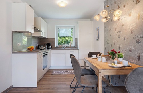 The holiday apartment Gästehaus Anna 2 EG, for example barrier-free with step-free access and suitable furnishings, is located in Suhle and is ideal for an unforgettable holiday with your loved ones. The 55 m² accommodation consists of a living room with a sofa bed for one person, a kitchen, a bedroom, and a bathroom, and offers space for 2 people. A third person can be accommodated on request and for an extra charge. Amenities include high-speed Wi-Fi (suitable for video calls) with a dedicated workspace for your home office, as well as a TV. The holiday home also has a private, covered terrace for relaxing evenings.
