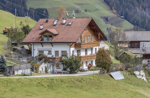 Located in San Martin de Tor (San Martino in Badia/St. Martin in Thurn) in the beautiful ‘House Belodei’, apartment B is the ideal accommodation for a relaxing holiday surrounded by nature. The ground floor apartment consists of a living room with 2 sofa beds (one for one person and one for 2 people), a well-equipped kitchen, one bedroom (with a queen size bed) as well as one bathroom and can therefore accommodate 5 people. Additional amenities include Wi-Fi, a washing machine and a television. Offering numerous amenities for children such as a children’s bed, toys, bikes as well as an on site playground, this property is particularly suitable for families with children. A foosball table and table tennis table are also available in the house for your use. In the shared outdoor area you will find a beautiful garden and a barbecue. Here you can enjoy warm summer days with a delicious cup of coffee while you overlook the green surroundings and animals nearby. From the property you can also enjoy a view of the Kreuzkofel massif and the peak of the 2,875 metre high Peitlerkofel. The nearest restaurant is located a 3-minute drive away (1.3 km) and a further selection of restaurants, cafes and a bakery can be reached by car in under 10 minutes. The nearest supermarket is an 11-minute drive away (5.5 km). Furthermore, a bus stop is located 10 minutes from the property and the museum Ladin Ćiastel de Tor is in the immediate vicinity. Cortina d'Ampezzo is approximately one hour and 10 minutes away by car (50 km) while Bolzano (Bozen) is approximately one hour and 25 minute away driving (66 km). 105 kilometres of slopes await you in the Kronplatz (Plan de Corones) ski area (5 km away) and a further 130 kilometres of perfectly groomed slopes are located in the Alta Badia ski area (4 km away). In the area you can also enjoy snowshoeing, tobogganing, ice skating and ski touring.