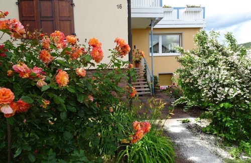 Our property is situated on a steep slope. No lift in the house! for bicycles is a storage space available.for an extra charge we provide a cot.towels and tea towels can be obtained for a fee.sufficient free parking on the property available.free Wi-Fi throughout the house.satellite TV Unique view from the flats and the guest terrace.