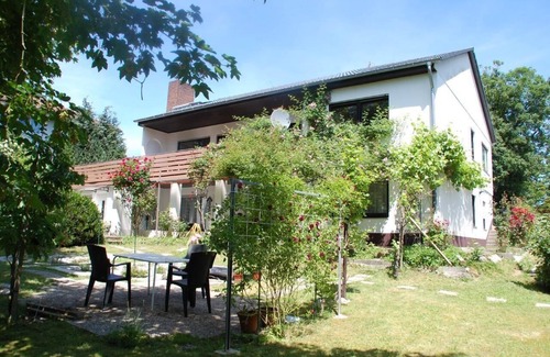 The master bedroom: With a spacious area and a view of the park-like garden, the bedroom is an oasis where you can enjoy cosy evenings. The bedroom is well equipped with a double bed, wardrobe, bedside tables etc. TV and WLAN are free of charge. TV and WLAN are free of charge.