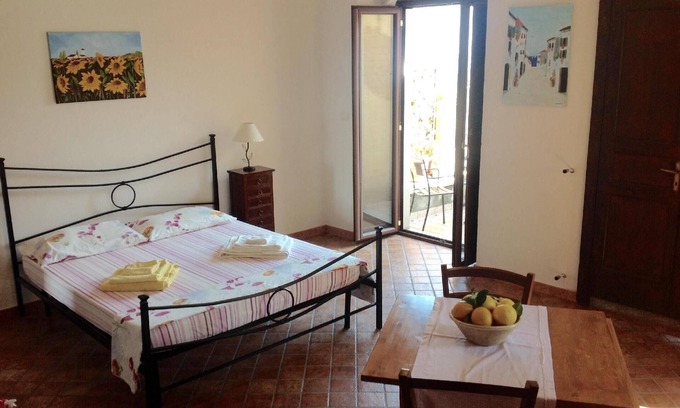 Equipped with every comfort, terrace/veranda(13.30 sq m ) sea and mountain view with outdoor table and chairs, double bed, kitchenette, bathroom with shower cubicle(4.00 sq m ), independent entrance, TV, use of washing machine, bicycles available.