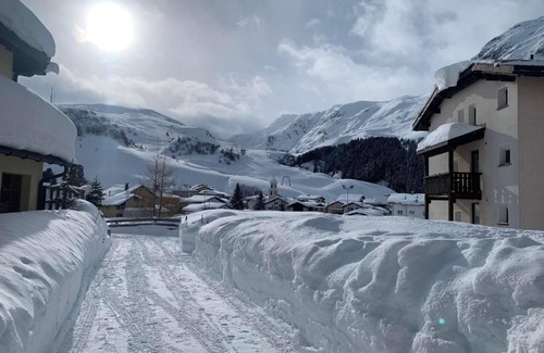 We rent out a newly renovated holiday flat with a view of the idyllic village of Bivio and the surrounding mountain landscape. The ski lift, shopping facilities, bus station, several restaurants and a large playground are all within a 4-minute walk (approx. 250 metres). The holiday flat comprises a bedroom with double bed, an open-plan kitchen with modern kitchen appliances, a dining area with a cosy corner bench and a living room area with TV. Wifi and Smart TV are free of charge. The flat is rounded off with a 20m2 sunny terrace with a view of the mountains and the ski piste. There are up to 4 sleeping places (double bed, foldaway bed, sofa bed). The flat is located on the 8th floor. The new inclined lift takes you comfortably from the garage to the floors.