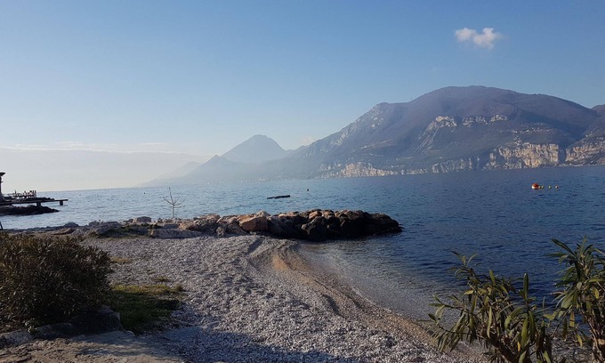 The house has two balconies outside with a fantastic view of the harbour and Lake Garda and equipped with a table and 5 chairs (one in front of the living room and one in front of the rooms). The beach is 80m away where 2 deck chairs are available for sunbathing.