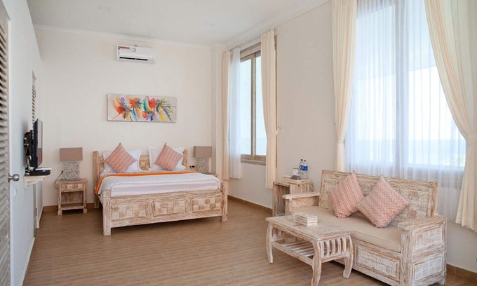 40 sqm bedroom with 20 sqm sea view veranda with bathtub provides an astonishing view to Bali Sea, sunrises and sunsets