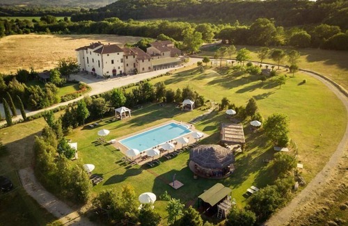 In the Tuscan countryside, next to Arezzo, the Santa Margherita Relais, offers its guests the possibility to discover the beauties of the area lodging in a suggestive and ancient building. The palace, expertly restored, is composed by seven highly comfortable flats. Each of them has a double bed plus a single bed, fully equipped kitchen, Sat TV with HD system, independent heating and a charming fireplace for winter nights. The ancient building is surrounded by five acres of fully fenced garden equipped with a beautiful swimming pool, pergola and a pizza oven with barbecue where the guests can enjoy a glass of red wine during summer evenings.