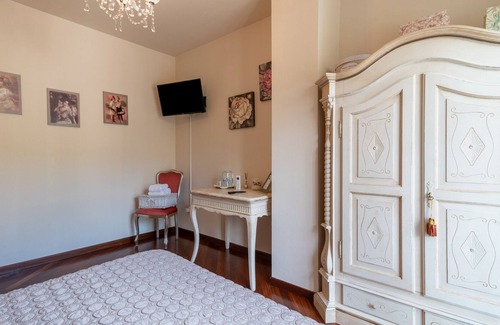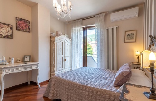 The holiday apartment "Casa Le Rose" in Arezzo provides a comfortable setting for a getaway with a mountain view. The 2-storey property consists of a living area with a kitchenette, 2 bedrooms and 1 bathroom and can accommodate 4 people. Available amenities include high-speed Wi-Fi (suitable for video calls), a dedicated workspace for home office, a smart TV with streaming services in the common area and 2 more TVs in the bedrooms, air conditioning and a game console. A baby cot is also provided.