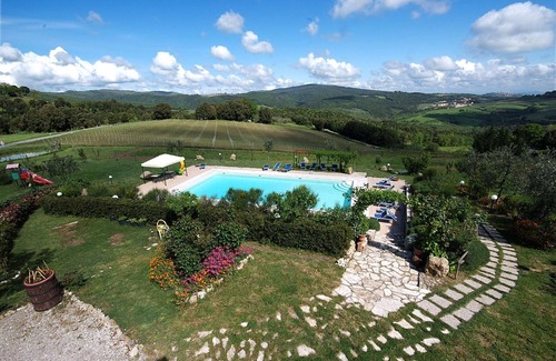 It stands on a hill, surrounded by a green landscape full of iridescent colors of vineyards and olive groves, where you can admire the view on the magnificent towers of San Gimignano. If you want to spend a holiday in total relaxation, our apartment is in the perfect location, central with scenic views and just 10 km from San Gimignano.It is located on the first floor with private entrance.