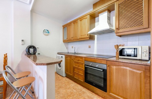 Located in Orihuela, the holiday apartment "En El Cabo Roig" offers everything you need for a comfortable stay. The 55 m² property consists of a living room, a well-equipped kitchen, 2 bedrooms, 1 bathroom, and can accommodate up to 4 people. Amenities include high-speed Wi-Fi (suitable for video calls), a TV, a fan, air conditioning, a washing machine, and a dryer.