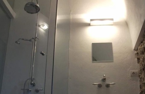 This stylish holiday apartment was integrated into a former oil mill. The apartment was completely refurbished, but clearly reflects the history of the walls. The old rock walls, the millstone that olives were pressed with, the vaulted ceilings create a unique atmosphere.