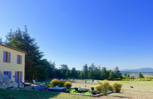 Résidence Château Ferrassières is located in the Unesco classified area of Mont Ventoux. The estate covers about 3 ha. In summer, a number of hammocks hang and there are several picnic tables. Lazing around in the garden, a game of petanque or sporting on the tennis court. Everything is possible.