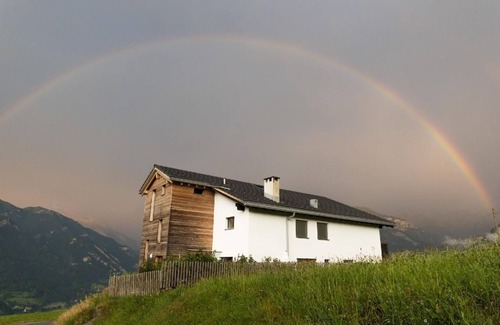 The location of our farm gives it a special character, quiet, idyllic, away from the hustle and bustle, away from the traffic, just the right place to relax, enjoy the surrounding mountains or enjoy the view of the Domleschg. But the children don't miss out either, they learn about the habits of the animals, can discover a lot here and fulfil their natural urge to move. The family-friendly Tschappina ski area is just 10 minutes away by car. The 2.5 room holiday flat was renovated to modern standards in 2014. It is located on the 1st floor and covers 70 m2. It has a spacious bedroom with double bed, kitchen, living room with sofa bed and bed and a spacious bathroom/WC. A large balcony invites you to linger and you can barbecue in the garden seating area. Large windows bring plenty of light and warmth into the living area. It offers enough space for 4-5 people.