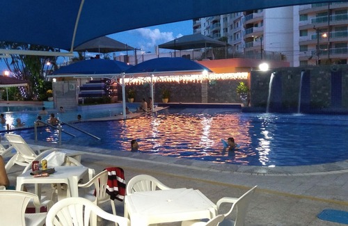 Beautiful apartment with 2 suites, 1 suite with double bed, wardrobe and air-conditioning, 1 suite with 1 single bed and 1 bi-bed, wardrobe, ceiling fan, American kitchen, living room with sofa bed and balcony, Swimming pool with natural water, Waterfalls, Sauna, Games Room, Wet Bar, Snack Bar, Restaurant, Solarium with Barbecue, 01 parking space rotating per apartment, as long as there is availability in the condominium, limited spaces, All occupants will be subject to use of identification bracelet, The condominium charges R $ 5.00 per occupant of occupancy rate, It is allowed to descend to leisure area with food and drinks, with maid service (bring sheets, pillow cases, pillows, towels and blanket).