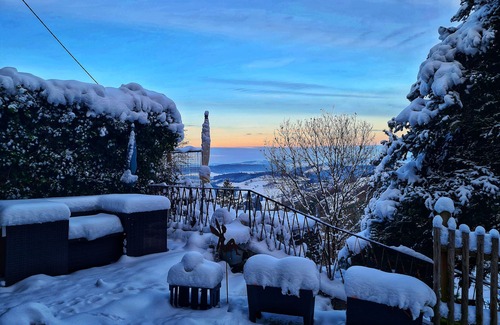 We are here at an altitude of approx. 650m, which guarantees a great, wide view of the Sauerland. Since we are located right next to/in the forest, hikes, bike tours, etc. can be done immediately and easily from the apartment. However, you can also just make yourself comfortable on the balcony or in the garden. Parking and WiFi are available on site. The rustic, cozy garden hut with fenced garden area also invites you to linger. This is equipped with a fireplace, refrigerator, seating area, sofa and some household items (e.g. cutlery, coffee machine and much more). The apartments themselves are equipped with everything you need and leave nothing to be desired.