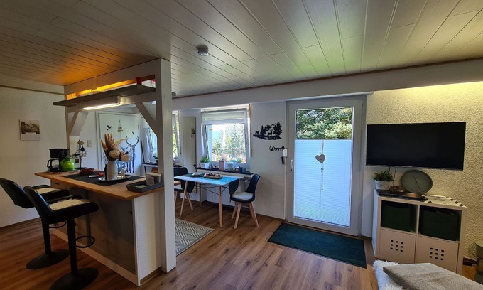 - Holiday Apartment Gartenblick 50sqm with Terrace, Garden, Fireplace and Open Kitchen with Counter