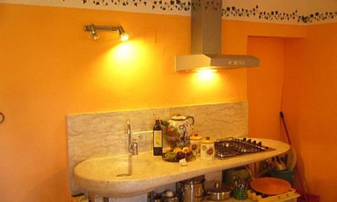Apartment 'I Cuccioli' is a cool refuge from the summer’s heat and keeps a pleasant temperature in winter. The apartment was reconstructed with a very personal touch and has a kitchen work place all handmade from natural stone. For the bedroom we chose an antique brass bed frame. Right in front of the kitchen you may enjoy the afternoon and evening sun on your private terrace, shaded by a mulberry tree. Or find a quiet place under one of the olive trees in our garden.
