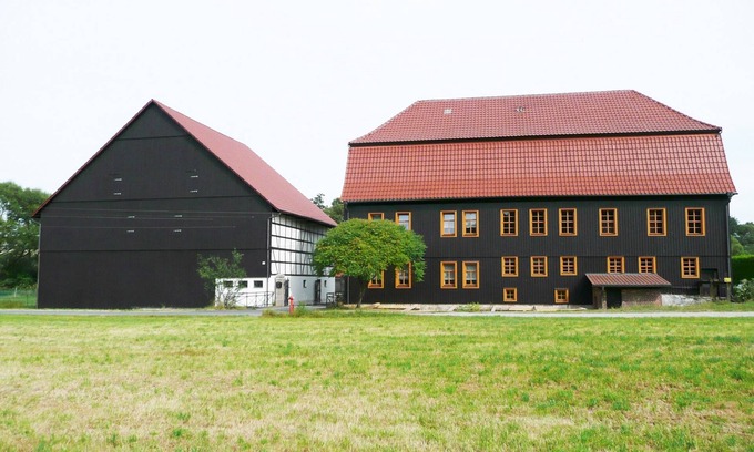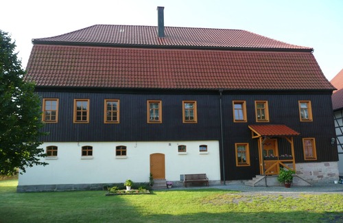 Welcome to our vacation apartment in the 'Old Mill. 'This Old Mill apartment is located in an 800-year-old water-powered grain-mill building (passed down within our family since 1317).The entire property includes a big farmhouse, with adjacent buildings and a lot of land. Our mill is an historic building, about 200 meters outside the town of Schleusingen. This building was not only used as a mill for centuries, but also as a home by the millers. The apartment has been modernized and completely renovated within the last few years. The apartment is a comfortable, furnished one-bedroom suite that includes a spacious kitchen and bathroom. The apartment will accommodate 2-3 adults and 1-2 children. From the front of your bedroom you can hear the 'mill ditch' roar and your view extends over the woods of the small Thuringian Forest. On the terrace, you can enjoy the 'Original Thuringian Bratwurst' in an idyllic atmosphere.