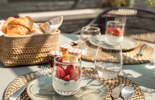 Each apartment accommodates two guests and has its own unique style. They are warmly and tastefully decorated, featuring a luxurious bathroom with a toilet and shower on the ground floor and a king-size box spring on the mezzanine. Thanks to the delightful underfloor heating and wood stove, you can enjoy a stay with us all year round.