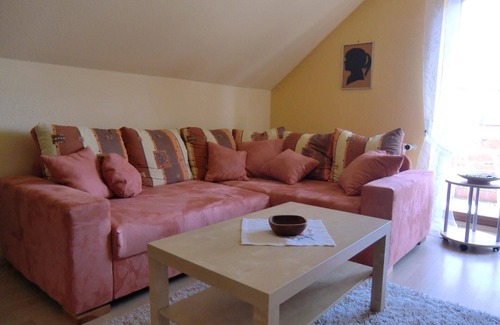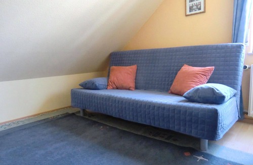This is a comfortable holiday apartment with a balcony on the upper floor of a detached house otherwise used only by the owner. It is quietly situated in a typical residential area near cafes and restaurants, supermarkets and public transport. As a suburb of Frankfurt, Maintal Hochstadt is also very popular among trade fair visitors.