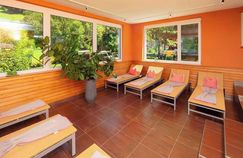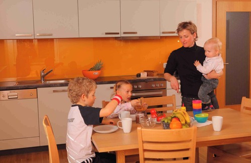 The holiday apartment is located in an apartment house and is furnished in a functional style. The property is located in a holiday resort, on the outskirts. Also due to its quiet and sunny location the domicile is popular. Available for use: sunbathing lawn, parasol, sun lounger, children's playground, terrace and lift. Outdoor dining areaHoliday resortreception, 1 restaurant, bar, common room, internet (WLAN), children's playroom and ski room. Stube, room service - optional for a fee on site, laundry service - optional for a fee on site, ironing service - optional for a fee on site, reading room / library, shoe room, shoe dryer, vending machine, breakfast room, luggage service and luggage storage possible at reception - cash payment, debit card (bank card -/EC card) are also possible. LocationBezau. The holiday apartement is located in a holiday complex, on a enclosed garden plot with meadow and trees, bordered by a fence. For the hosts, a family holiday does not mean that the little ones are looked after around the clock and that the “big ones” are practically free. For 25 hours a week, the dedicated "child care team" takes time for the little, "middle-aged" and "not quite big" guests: they go on a discovery tour together in the "cave park" or in the neighbor's stable, there are fairy tale hours & children's cinema, reservoirs are being built, fires are made for barbecuing, exciting hikes are on the agenda! In winter there is a children's taxi that takes the little ones to ski lessons and picks them up again.