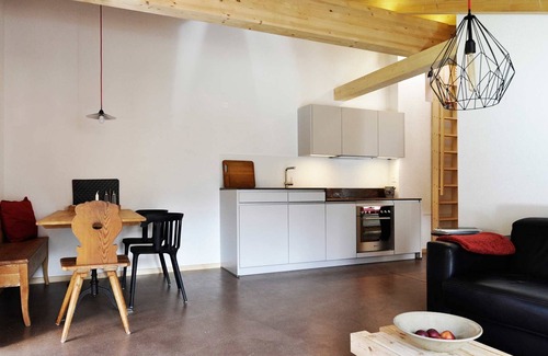 The kitchen is equipped with a ceramic hob, oven, fridge and dishwasher. The dining table easily seats up to 6 people. There is also a fondue set for enjoying the local cheese speciality.