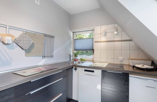 Even on days with bad weather, relaxation is guaranteed within our four walls. The open kitchen is equipped with a double induction hob and a dishwasher. For a pleasant start to your day, a Nespresso machine is available.