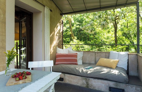 Your private outdoor area includes a garden, a cozily furnished covered terrace and a barbecue. A shared outdoor area with a pool is also available for your use.