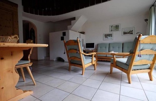 Welcome to the Engadin Other living room facilities (living room 1): cosily furnished flat with Swiss stone pine furniture. Large dining table for 6-8 people with corner bench and tables, pass-through from kitchen to dining area. Comfortable upholstered suite, access to the sunny terrace (balcony chairs with cushions and table available) Other bedroom furnishings (bedroom 1): Bedroom no. 1: with double bed 1.80x2.00, large beautiful Swiss stone pine wardrobe Bedroom on gallery: 2 beds 0.90x2.00, large beautiful Swiss stone pine wardrobe Other kitchen furnishings (kitchen1): Functional fitted kitchen with serving hatch to the dining area in the living room Sports facilities in the area: fishing, mountaineering, ice skating, golf course, mountain biking, cycling tours, skiing (alpine), skiing (cross-country)