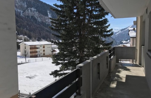 From our south-facing balcony (with folding table and garden chairs) you can see as far as the Rhone valley or over to the rock face (Gemmi) and from our east-facing balcony (with folding table and electric barbecue in the summer months) up to the Torrentbahnen ski area.