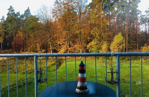 The property offers a private outdoor area with a garden and garden house, where you will find additional garden furniture, a covered terrace with a wonderful view of the coastal forest, a balcony, and a barbecue. On the grounds of the holiday park, there is a bicycle and stand-up paddle rental as well as a laundry service, each available for an extra fee. The on-site restaurant offers a bread roll service.