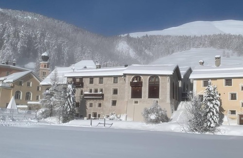 Welcome to your holiday home away from the hustle and bustle, nestled in the picturesque beauty of the Upper Engadine. This pretty flat in Madulain offers the ideal retreat for your next holiday. With two comfortable bedrooms, two modern bathrooms, a fully equipped kitchen and an inviting dining/living room with a lovely fireplace, this accommodation offers everything you need for a comfortable stay.