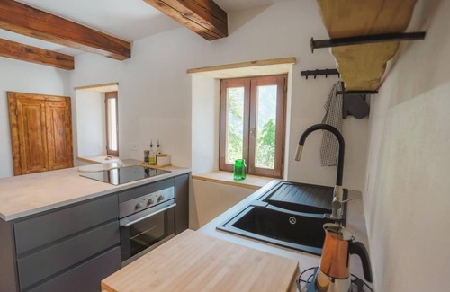 Theapartmentis arrangedon two floors: kitchen and living room on the ground floor and 2 bedrooms with bathroom on the first floor, connected by a comfortable walnut staircase. The apartment also has an outdoor terrace for exclusive use (accessible directly from the living room) from which you can reach the large common garden of the house. The ancient vaulted cellars of the building are also accessible and offer the possibility of using some delicacies of the territory (cheeses, wines, etc.).